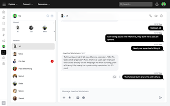 WorkVivo Chat Favorites är ett kostnadsfritt tillägg för Chrome som hjälper användare att organisera sina viktigaste konversationer i WorkVivo. Med denna funktion kan användare enkelt fästa sina favoritchattar, vilket gör dem lättillgängliga genom en horisontell karusell i sidofältet. Genom att klicka på en fäst konversation kan man snabbt navigera dit, vilket sparar tid och minskar behovet av att bläddra genom långa chattlistor. Tillägget har även en smart laddningsfunktion som automatiskt hittar och laddar konversationer som inte är synliga i sidofältet.